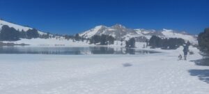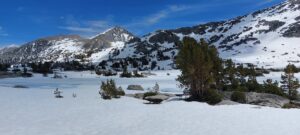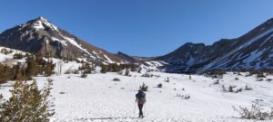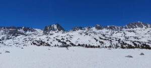 Der Piute Pass ist nicht sehr steil, zieht sich aber lange durch ein Tal. In der High Sierra gibt es unglaublich viele Seen. Momentan sind alle noch zugefroren. Wir nutzen dies oft zum Kraftsparen und laufen am Rand über die noch dick gefrorene, flache Eisschicht anstelle am Ufer entlang durch den Schnee zu stapfen und rutschen.