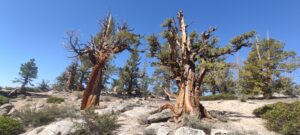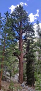 Wir kommen immer wieder an alten Baumgiganten vorbei. Mein Liebling ist der Sierra Juniper, der Westamerikanische Wacholder. Ich kenne Wacholder bei uns nur als Busch. Hier sind es Baumgiganten, Überlebenskünstler, die aus den Felsen in den Himmel ragen. Eine Baumsorte ragt so unglaublich hoch in den Himmel, dass ich mir wie eine winzige Armeise vorkommen.